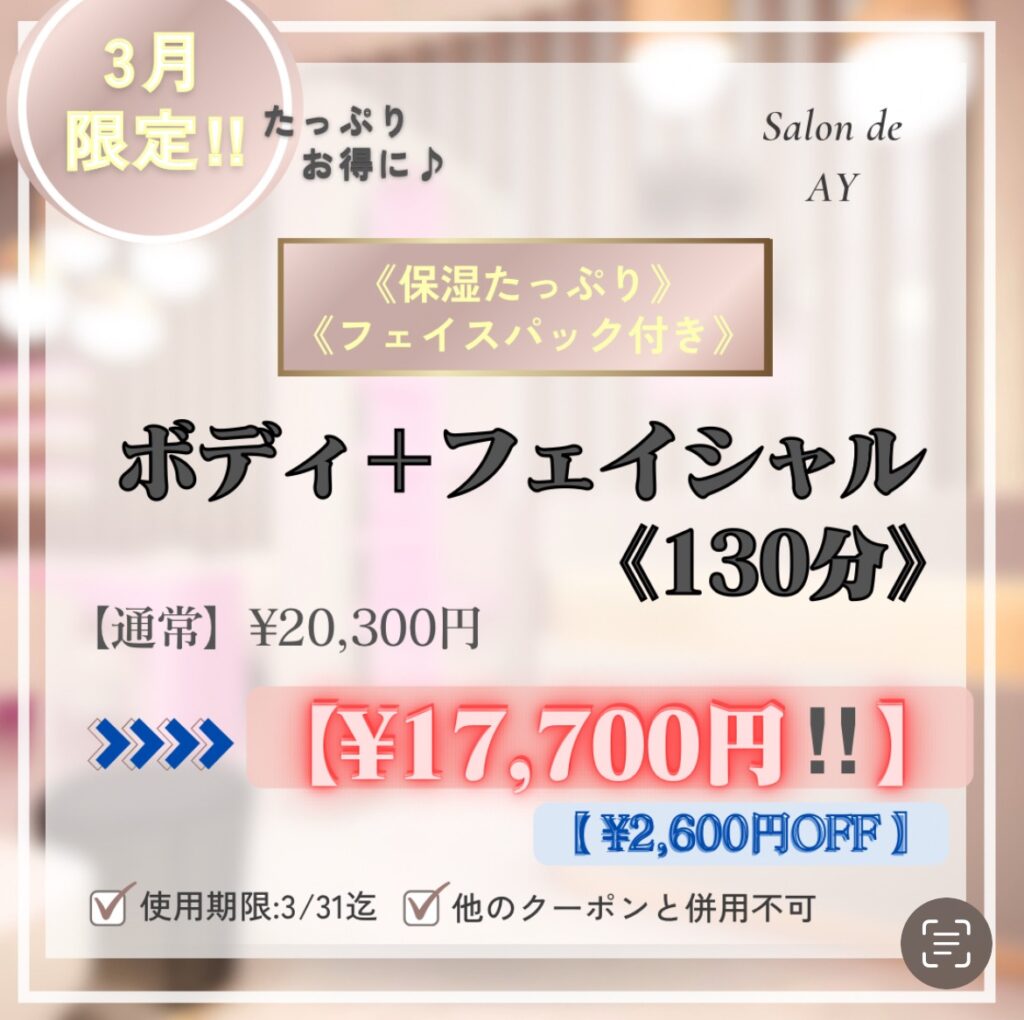 3月は卒業や新生活シーズン。お仕事も更に忙しい時期💪時にはスッキリ、リフレッシュしませんか😊⁉️