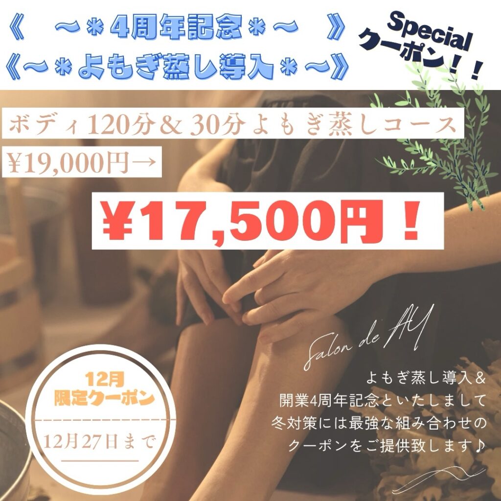 ✨㊗️4周年記念&よもぎ蒸し導入㊗️✨