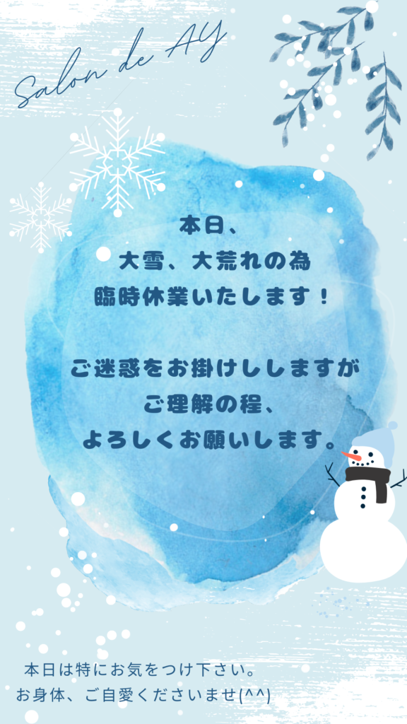 誠に勝手ではございますが、1月25日(木)天候による影響で臨時休業させていただきます🙇♀️💦大変申し訳ございませんが、ご理解のほどよろしくお願い致します🌿✨